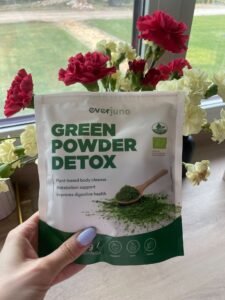 - Green Powder Detox – natūraliai saldus vaisių skonis, nėra „žolių“ poskonio.