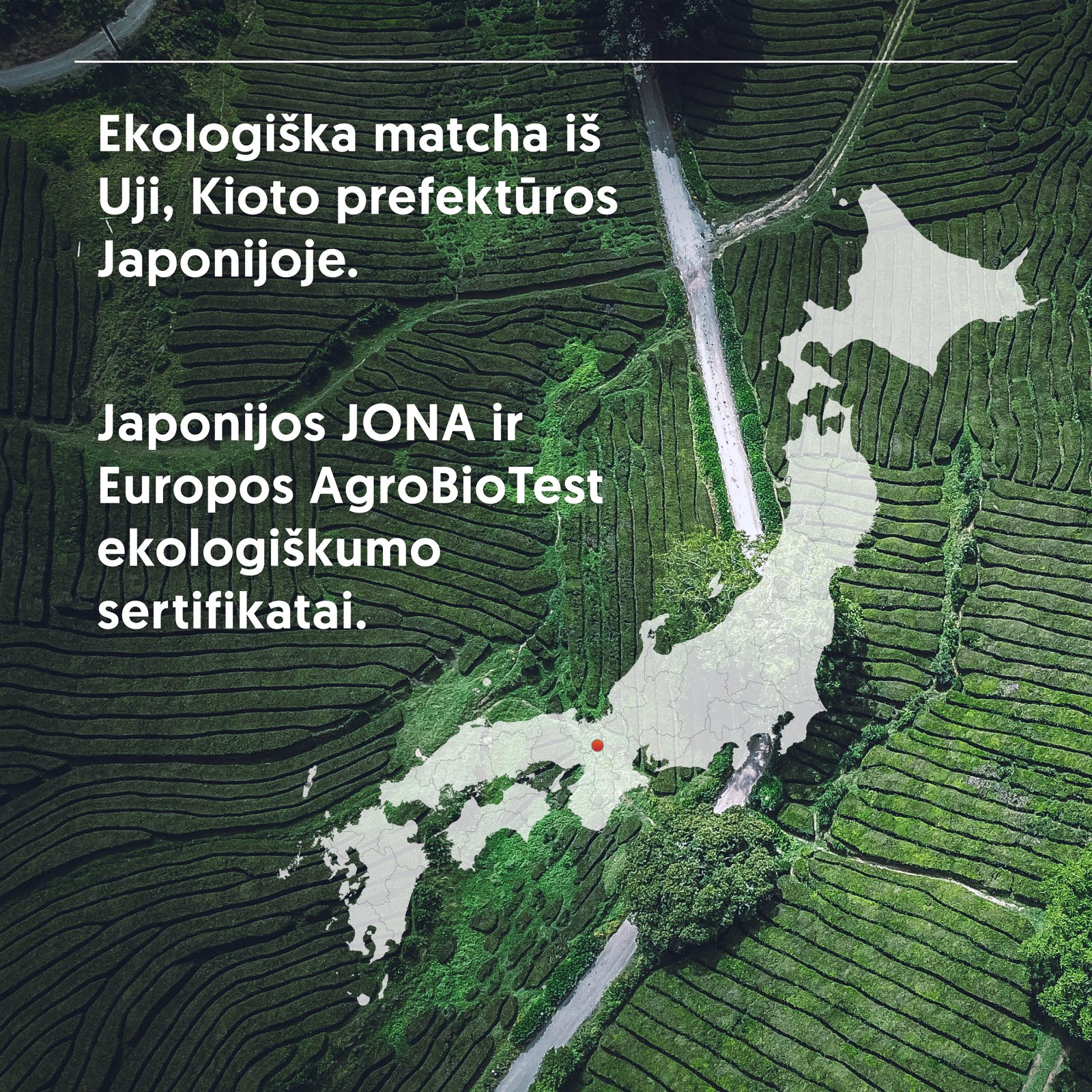 Mūsų matcha auginama Uji, Kioto prefektūroje, kuri garsėja idealiomis sąlygomis aukščiausios kokybės matchai auginti.