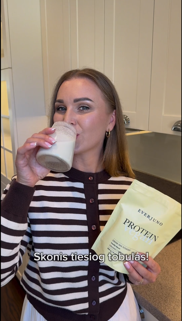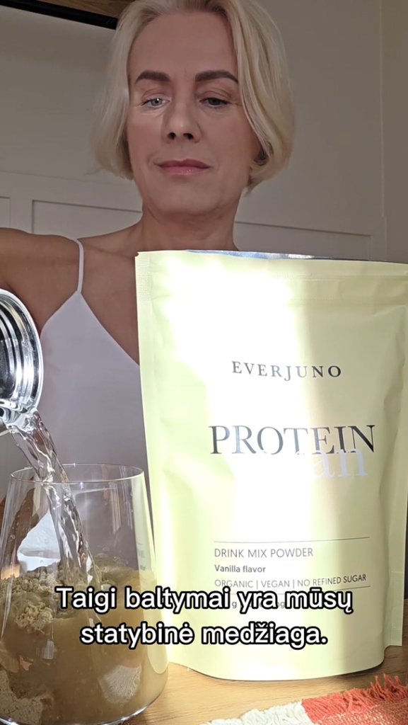 Man mazdaug ties 40 metų labai pasijuto, kad rankos pasidarė suglebę ir kojų raumenys pasilpnėję. Tai prisiskaičiau apie proteiną, kad papildomai reikia gerti, nes raumenų su amžium savaime tik mažėja. Bandžiau tuos is išrūgų, bet man ten tokia sintetika,šokoladinis skonis nepanašus į šokolaą, neprilipo visai. Pas trenerę Jolantą Facebuke šitus everjuno užmačiau, išbandžiau ir labai pritiko. Maišau su augaliniu nesaldintu pienu, gaunasi kaip vanilinis pieno kokteilis. Fainai, kad naturali sudeits, skanu.