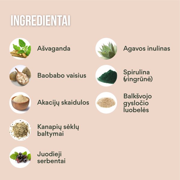 - Net 8 natūralūs supermaisto ingredientai.