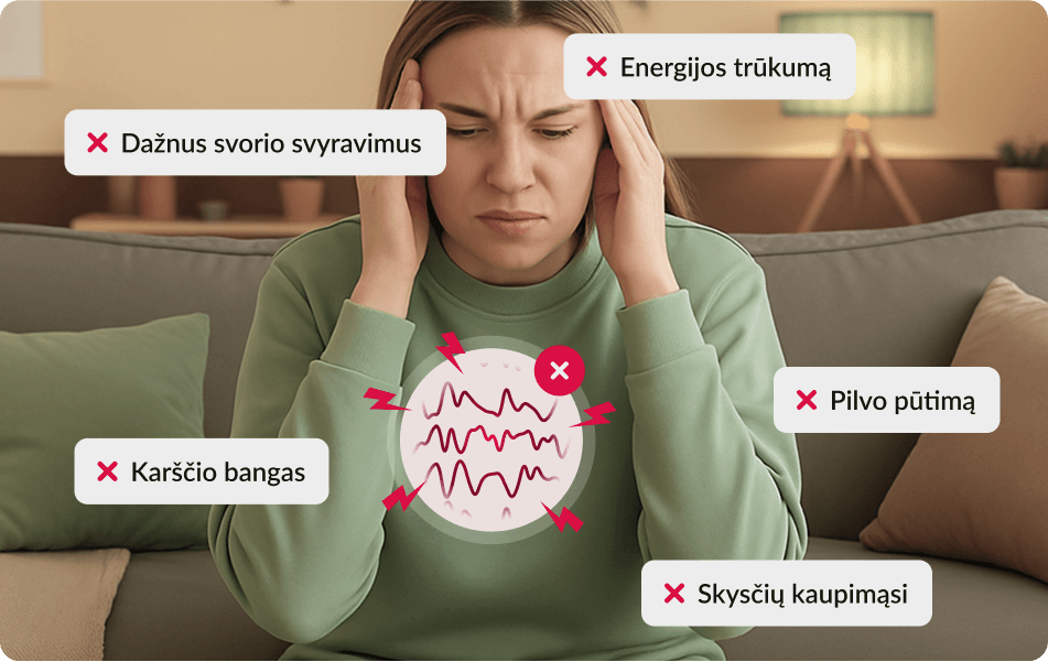 - Karščio bangas, padidėjusį prakaitavimą
